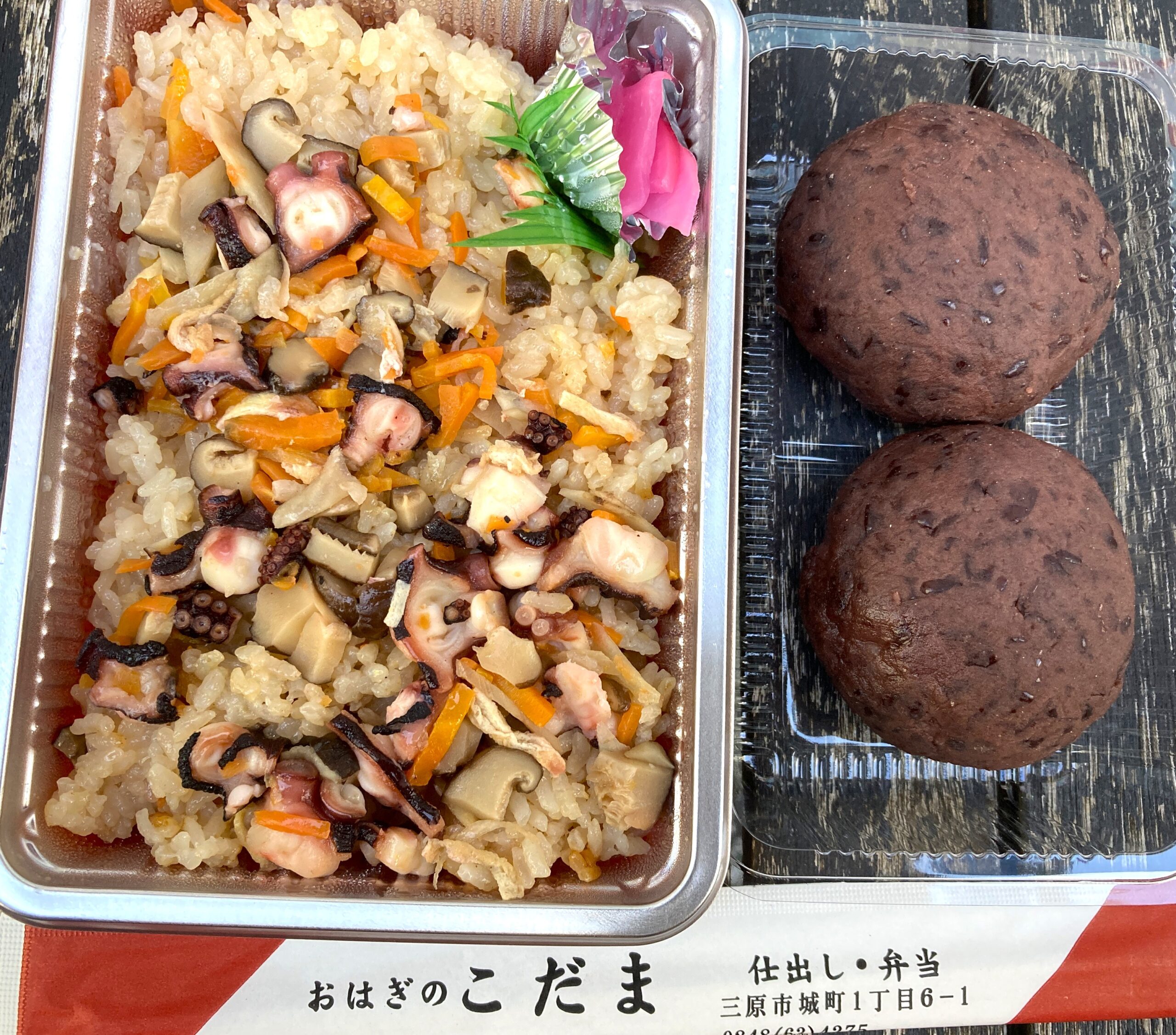 たこ飯、タコ天、鶏から、おはぎを購入。