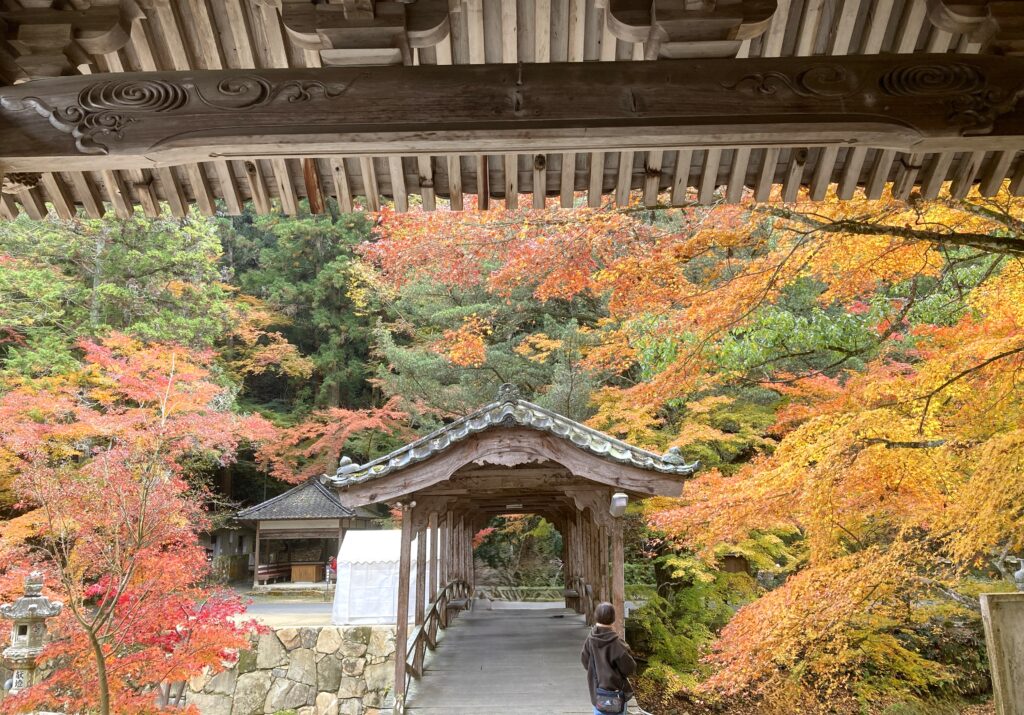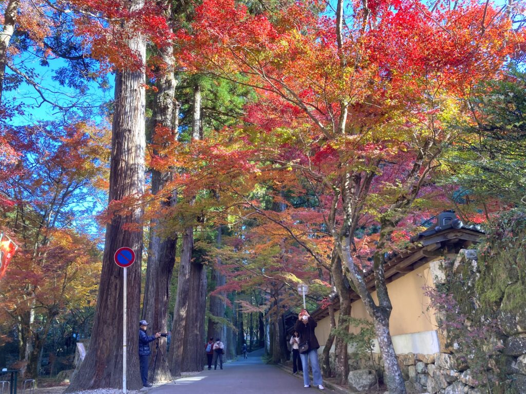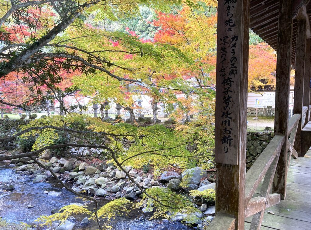 仏通寺川に沿う参道から、振り返り紅葉を満喫する。