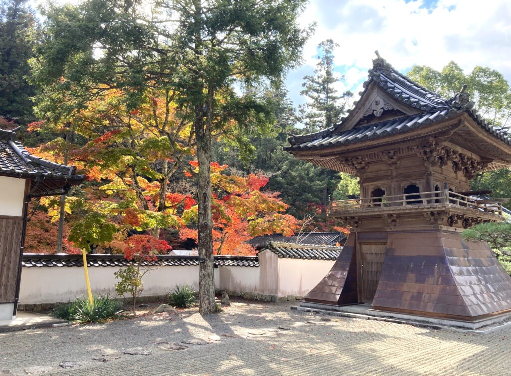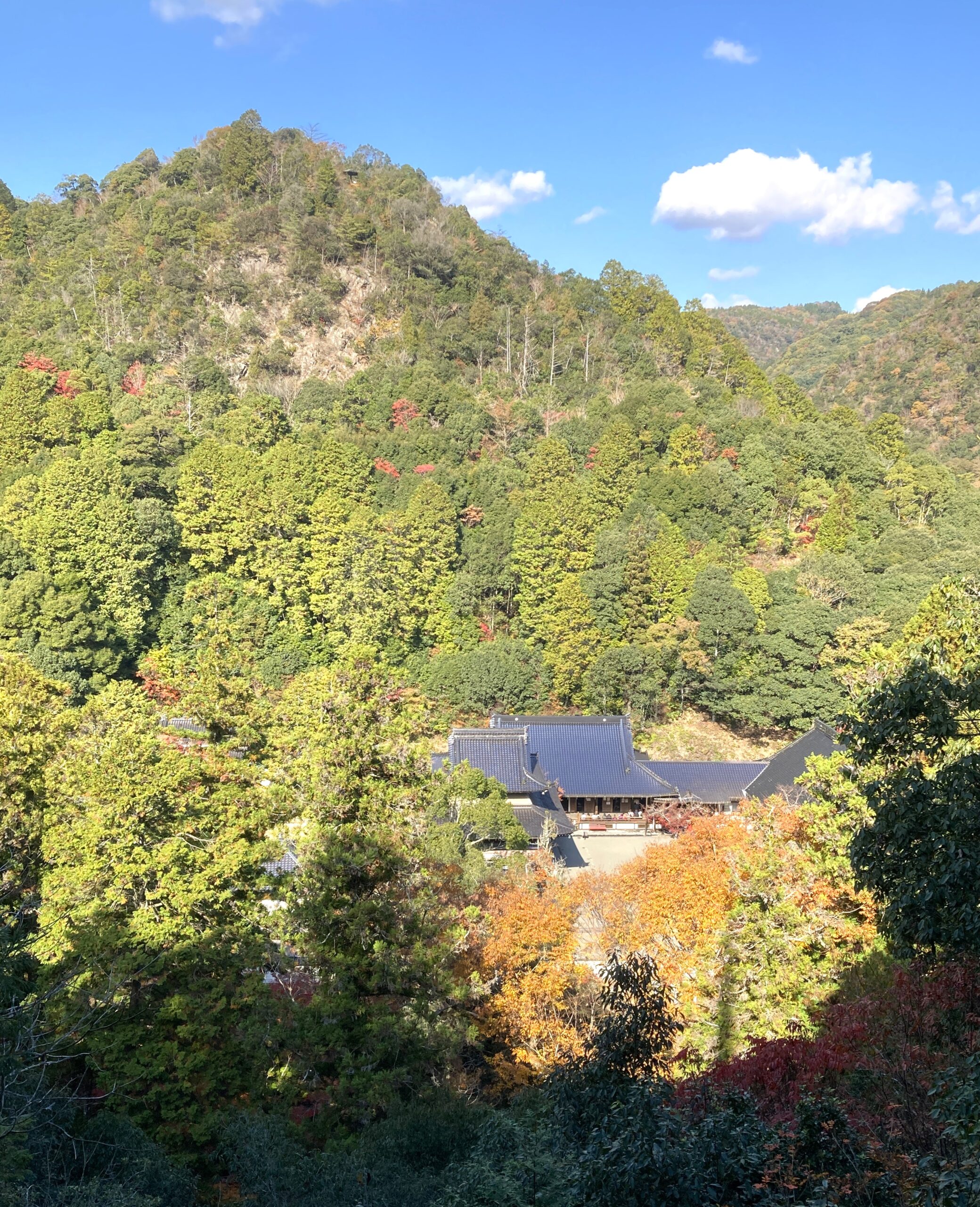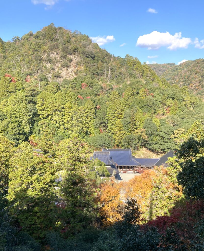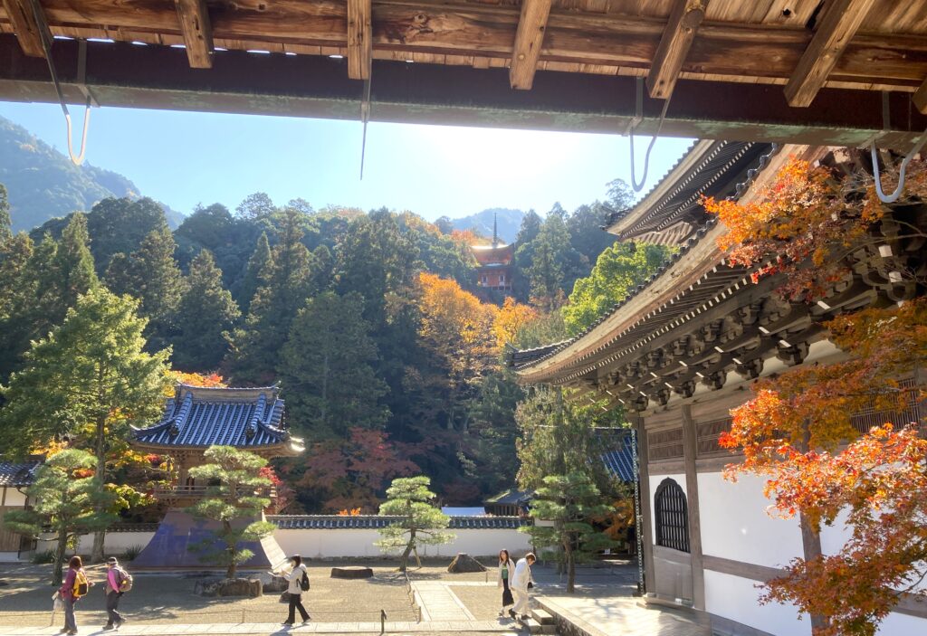 大方丈向かいの山腹に見える多宝塔を遠望する。