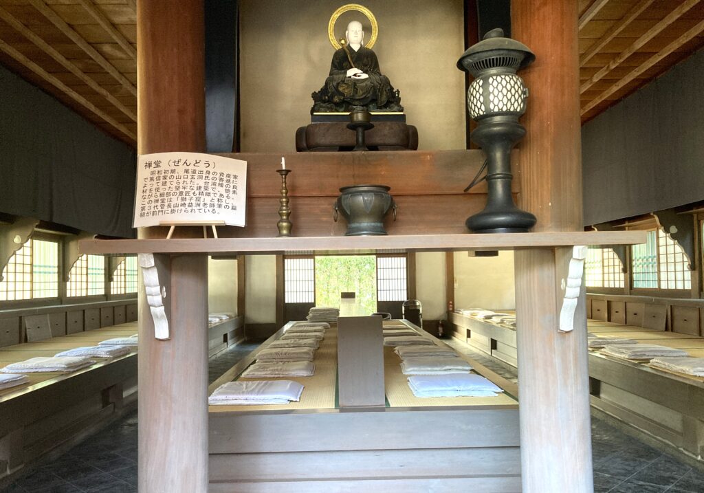達磨絵の前を通過し、座禅修行する禅堂を覗く。