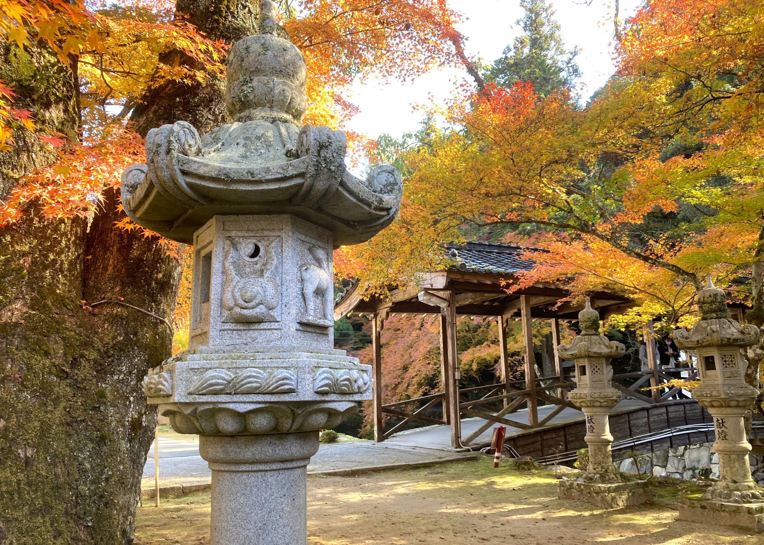 木漏れ日差す眩しい紅葉の天井。石灯籠並ぶ参道を物色しながら進む。
