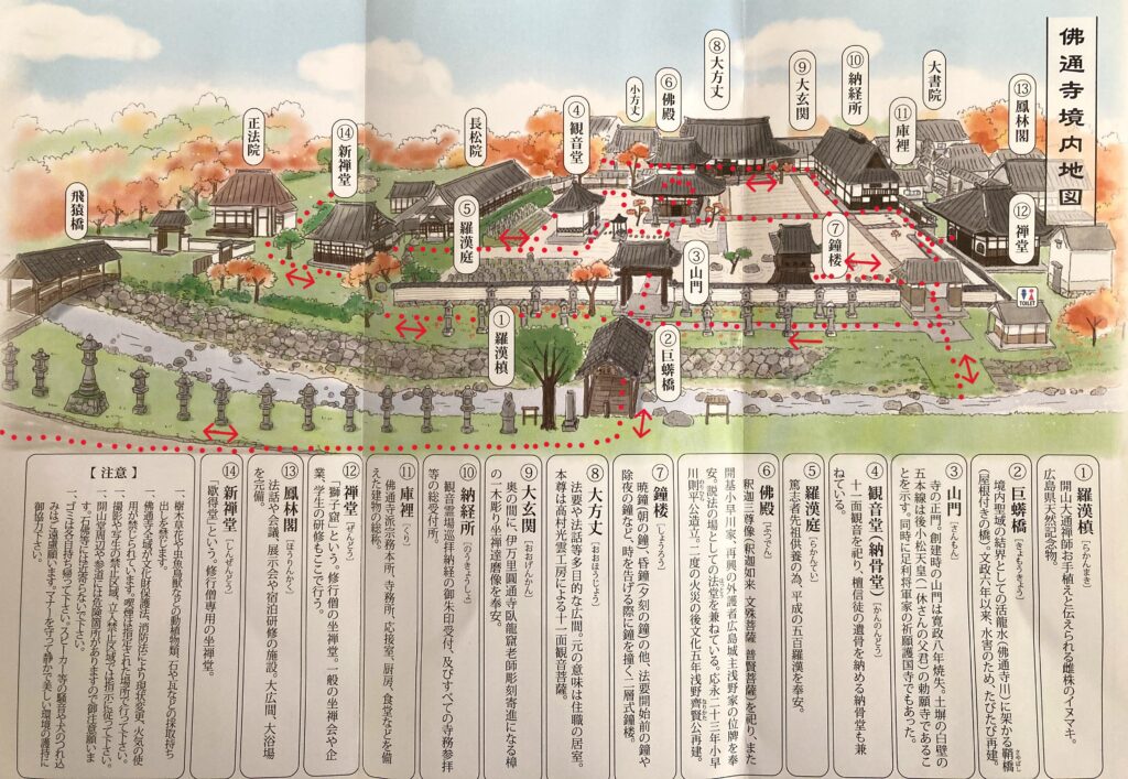 | 特徴 | 1397年沼田高山城主 小早川春平が、 名僧愚中周及び 禅氏を迎えて開いた 西日本随一の臨済宗 佛通寺派の大本山。 |