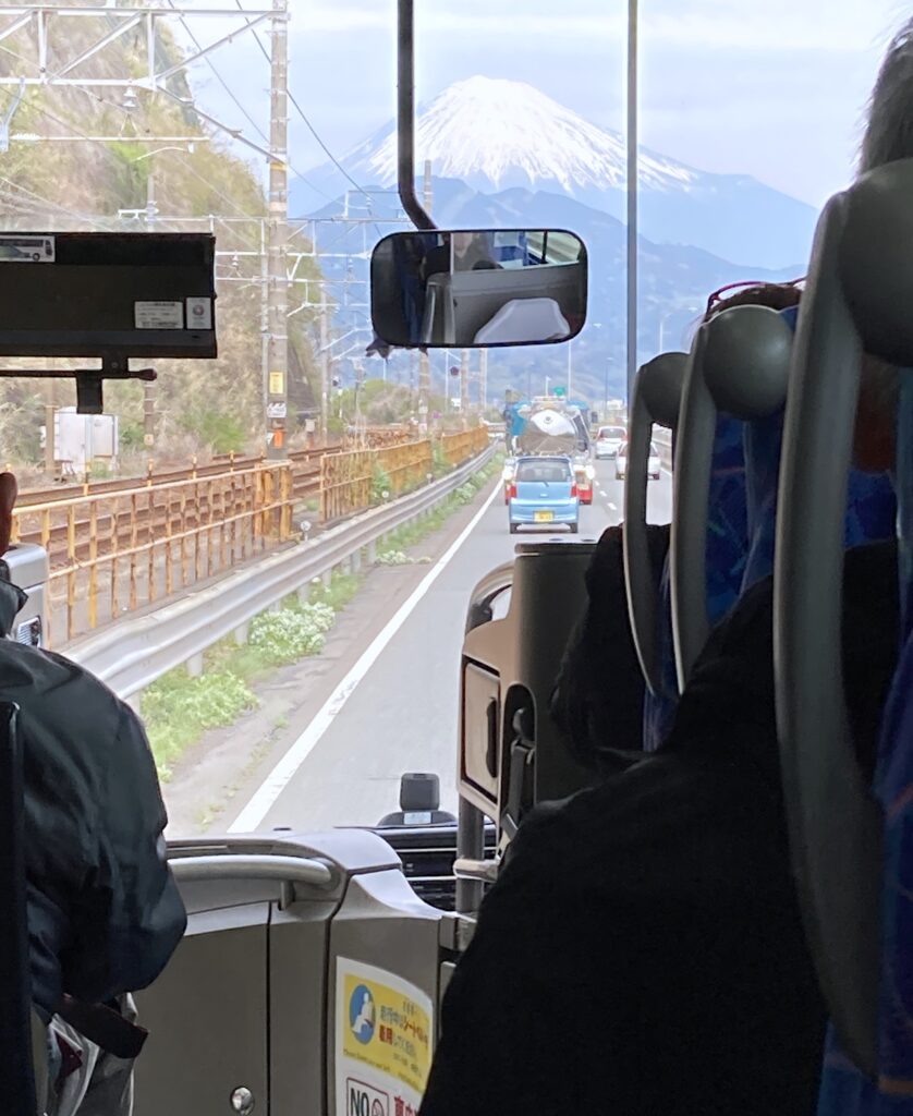 大鉄観光バスに乗り変え、移動する車窓の富士山を追いかけて進む。