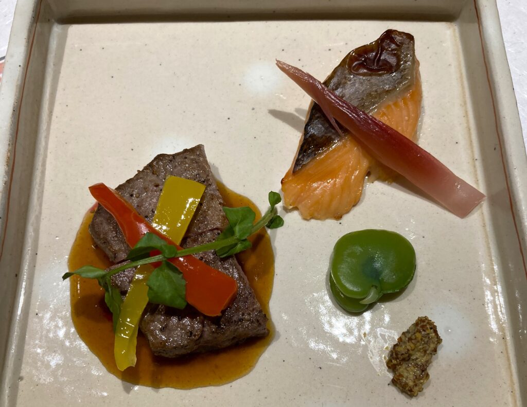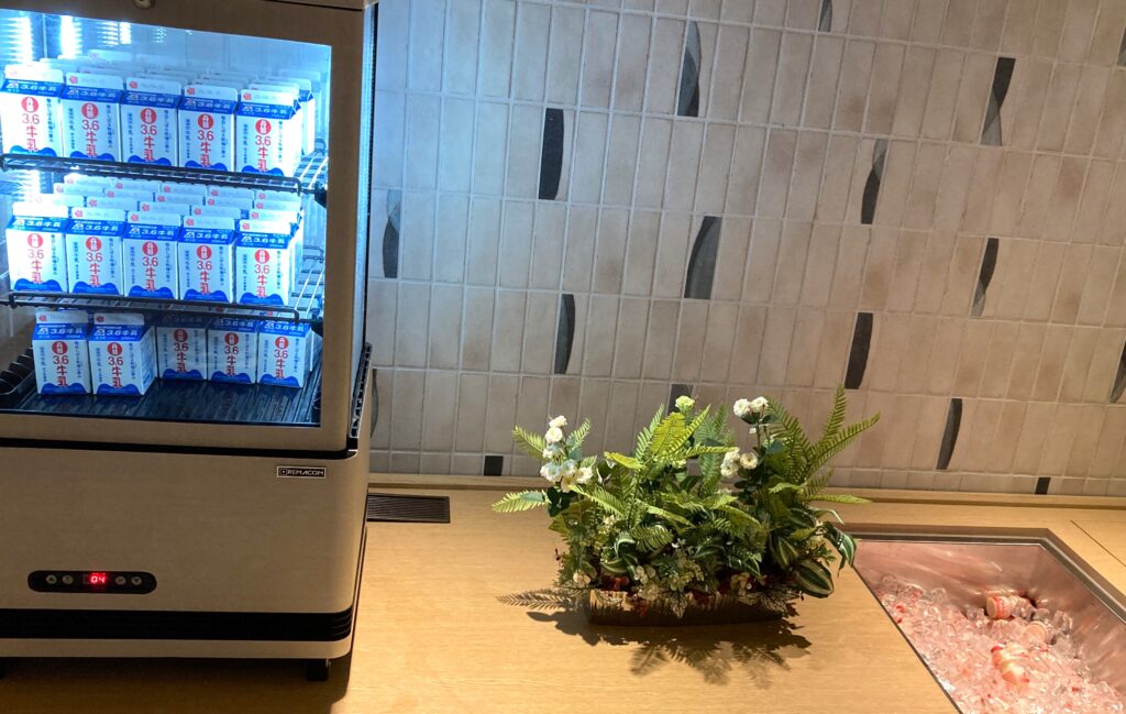 牛乳で空腹を押さえ、夕食会場に向かう。